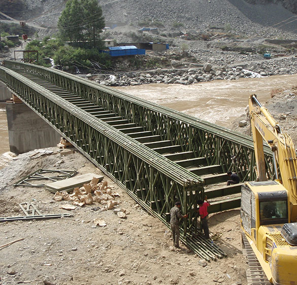 國內專業生產貝雷鋼橋較大企業之一。公司擁有貝雷鋼橋研發(fā)專業工程技術人員20余人,擁有能指導、執(zhí)行行業標準的人才和國內先進的制造工藝。目前已開發(fā)出各種高抗彎、高抗剪貝雷桁架梁新產品,滿足公路—I級、城—A級、HS25(美國荷載標準)、HA(英國荷載標準)等荷載要求。經實際運用,為大型工程施工中的超汽60、掛100車輛的通行發(fā)揮了巨大作用。